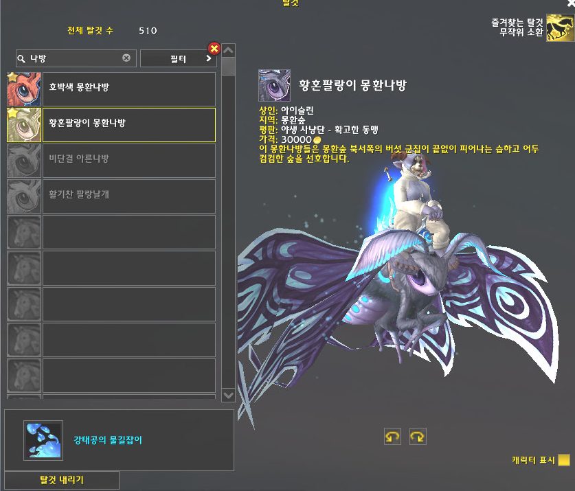 해당 탈것은 몽환숲 지역의 평판인