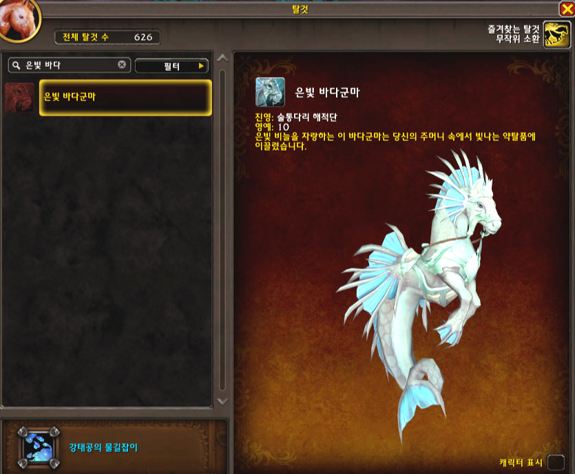 아무튼 이 은빛 바다군마는 10 영예에서 얻으실 수 있습니다.