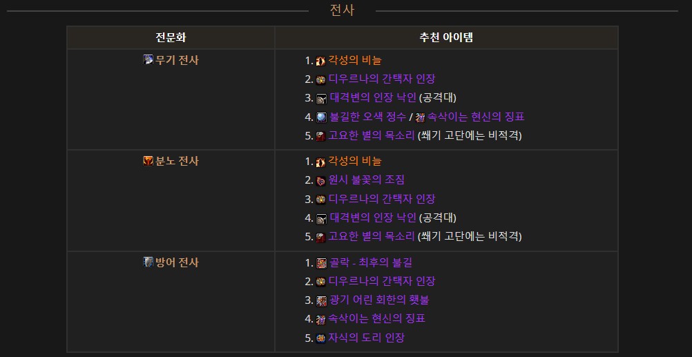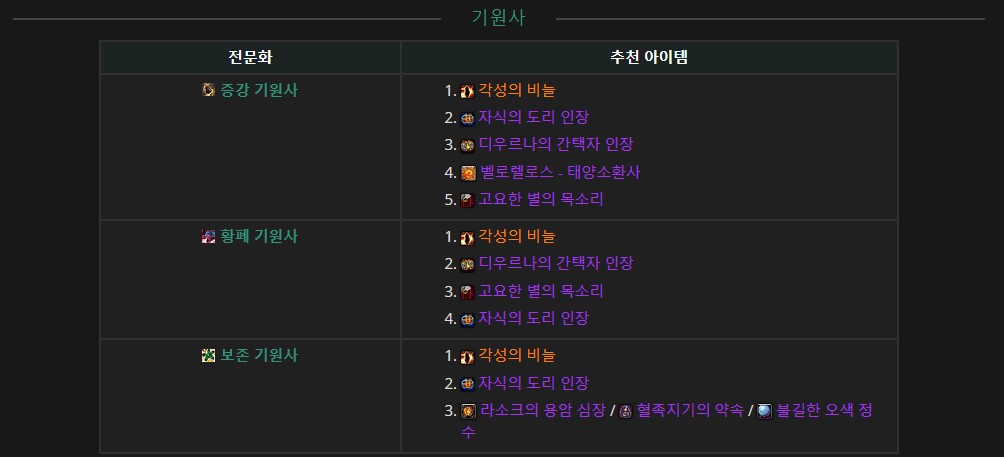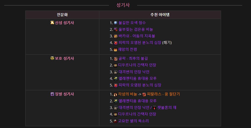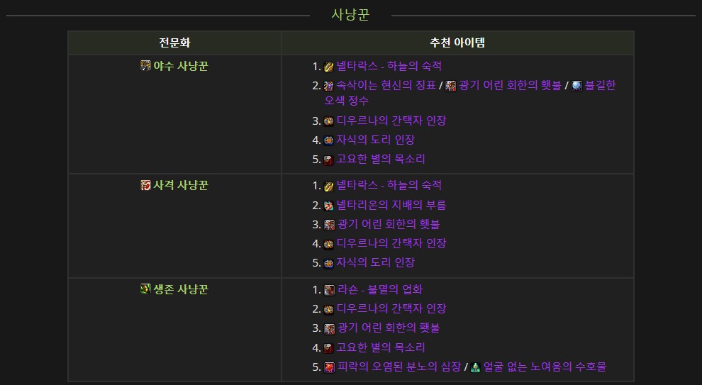 4 시즌 내 청동 주괴로 구입할 수 있는 직업 및 전문화별 최고의 아이템