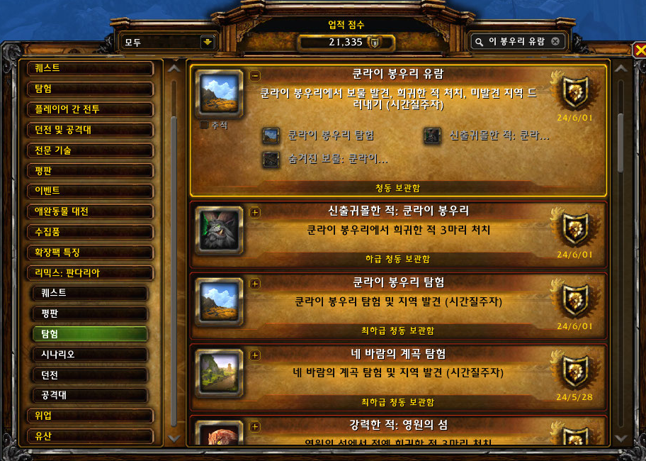 쉬운 업적이니 판다리아 리믹스 종료 전에
