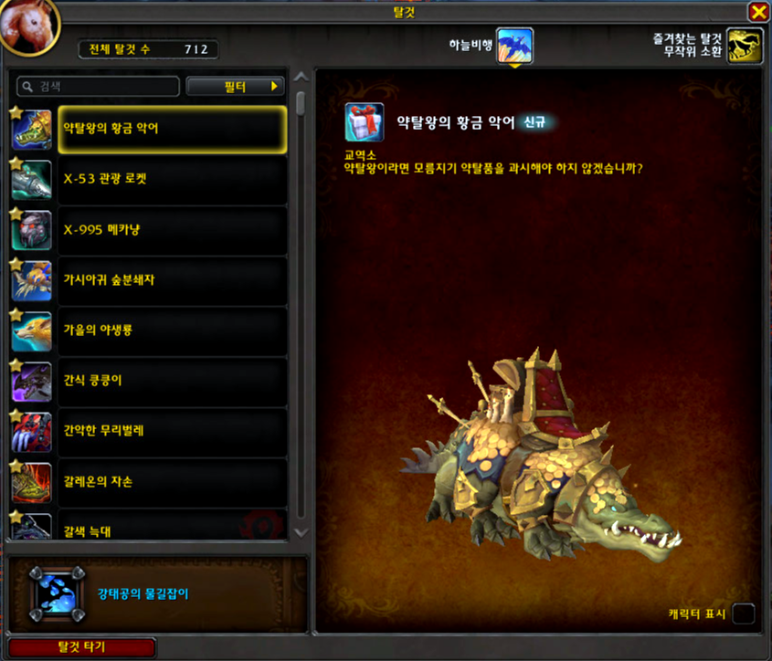 | [와우 탈것] 술통다리의 광휘 악어 (0) | 2024.10.11 |