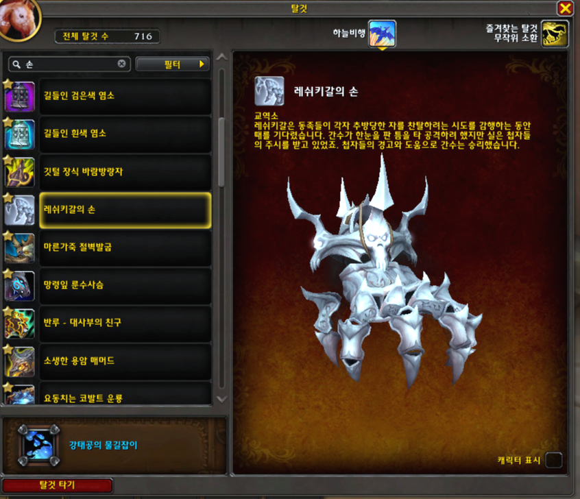 | [와우 탈것] 심장부 사냥개 (1) | 2024.11.09 |