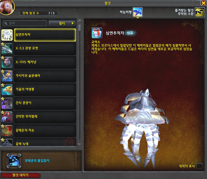 | [와우 탈것] 심장부 사냥개 (1) | 2024.11.09 |
