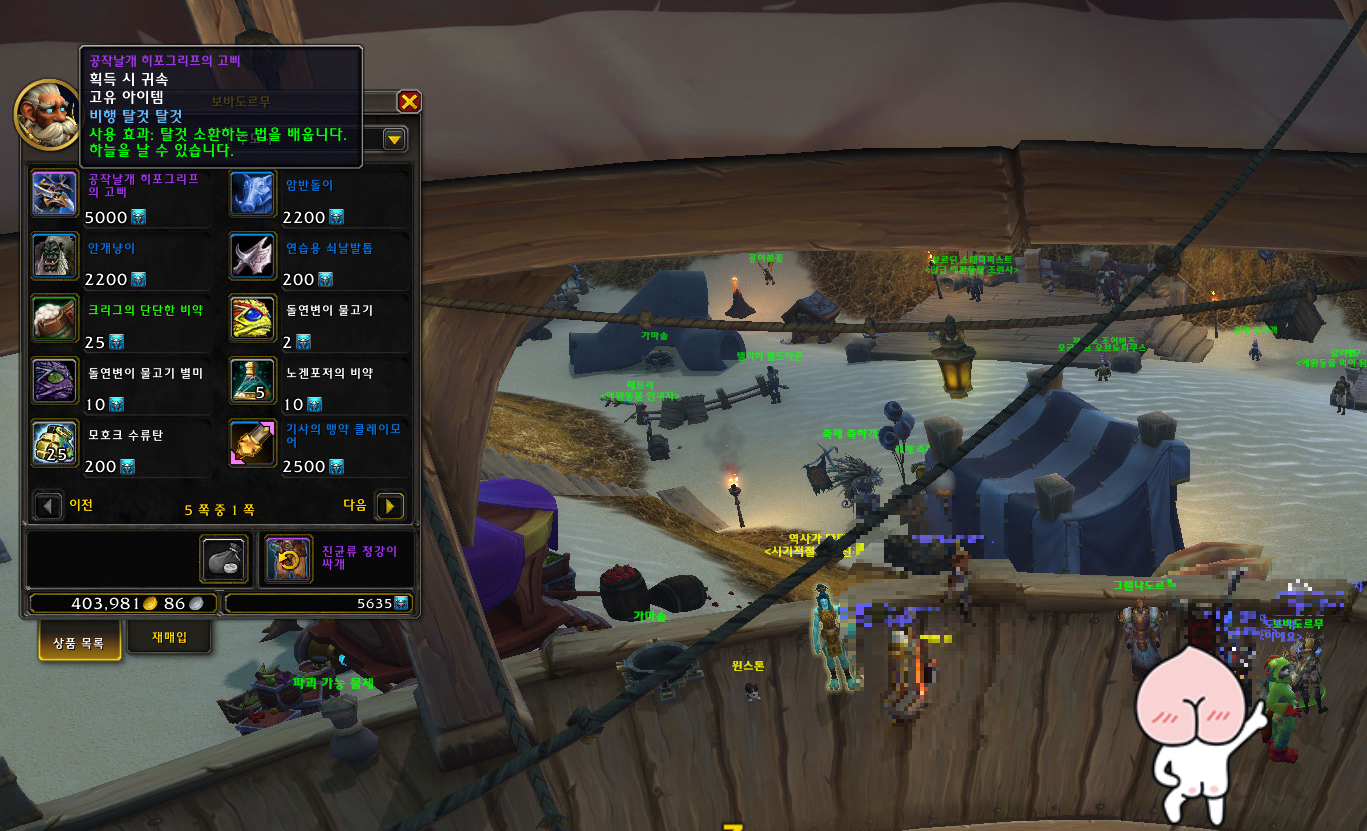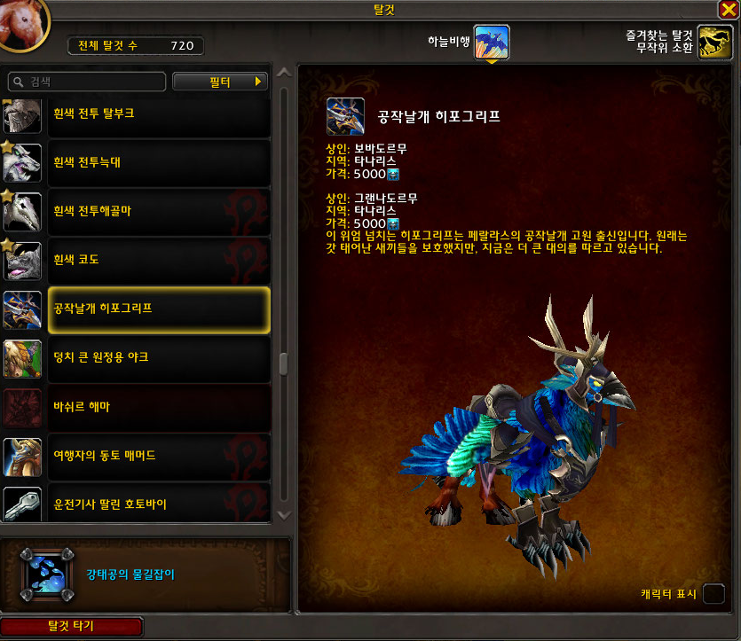 공작날개 히포그리프는 시간여행 훈장 5,000개로