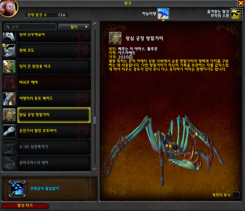 | [와우 탈것] 미망인의 땅밑거미 (1) | 2024.10.16 |