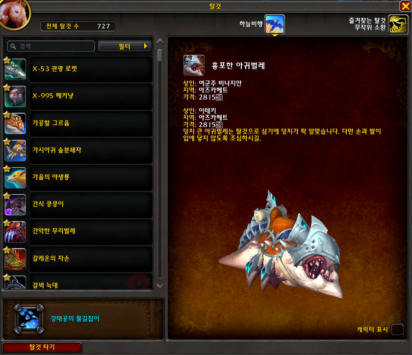 | [와우 탈것] 왕실 궁정 땅밑거미 (0) | 2024.11.23 |