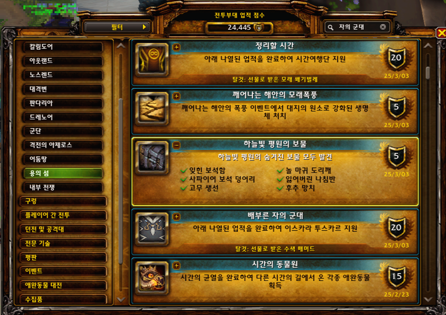 | [와우 업적] 배부른 자의 군대 (6) | 2025.03.09 |