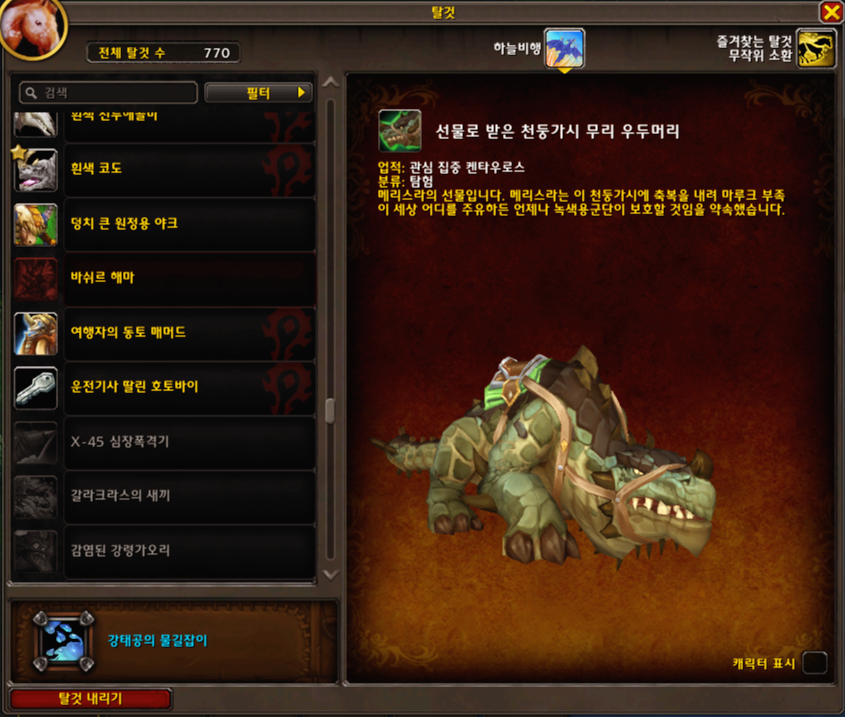 이 탈것은 업적 중 [관심 집중 켄타우로스]를 완료하면