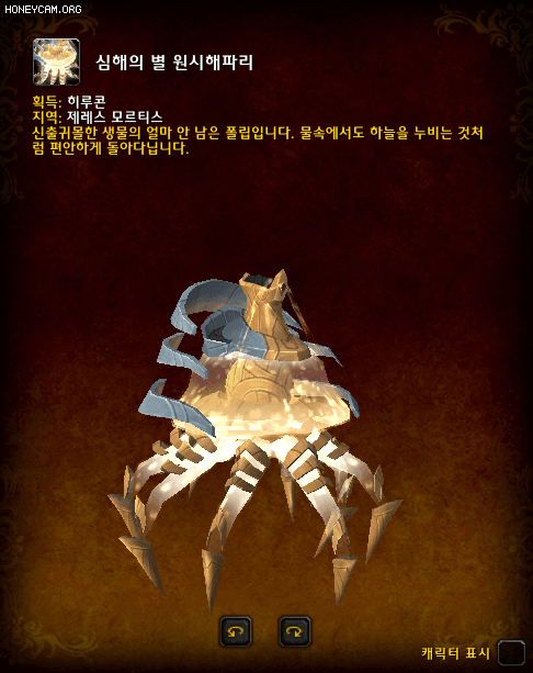 히루콘이 물속에 있어 꺼내는 조건이 있습니다.