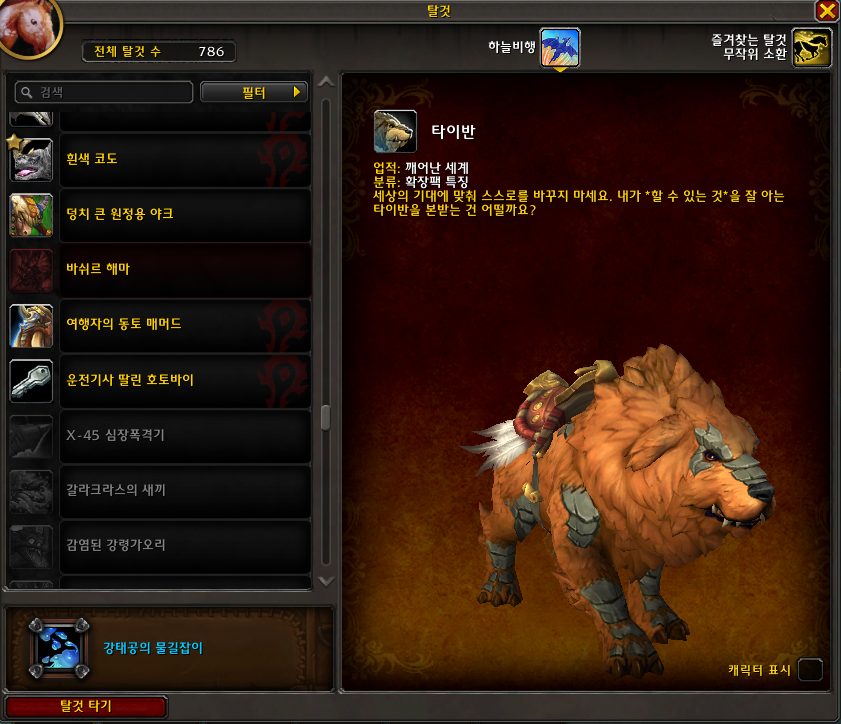 해당 탈것은 업적 [ 깨어난 세계 ] 완료 시