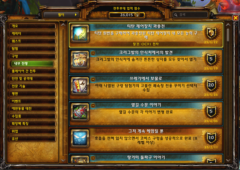 | [와우 업적] 진취적인 벌목전차 (4) | 2025.05.24 |