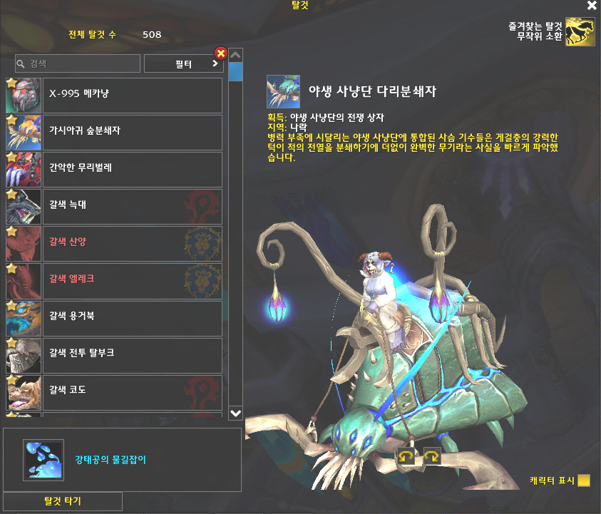 게걸충 탈것은 이번 확장팩에 4~5개 정도 있으며