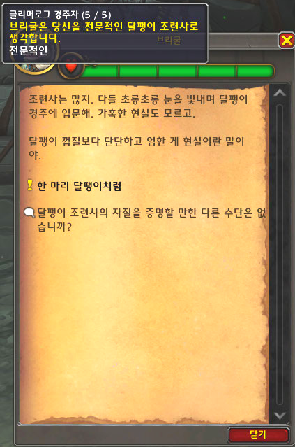 달팽이 경주 퀘도 있는데 그 퀘스트는 상관없고