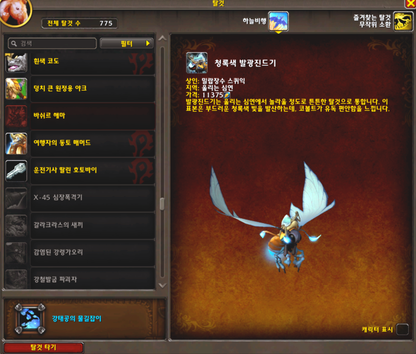 [와우 탈것] 청록색 발광진드기
